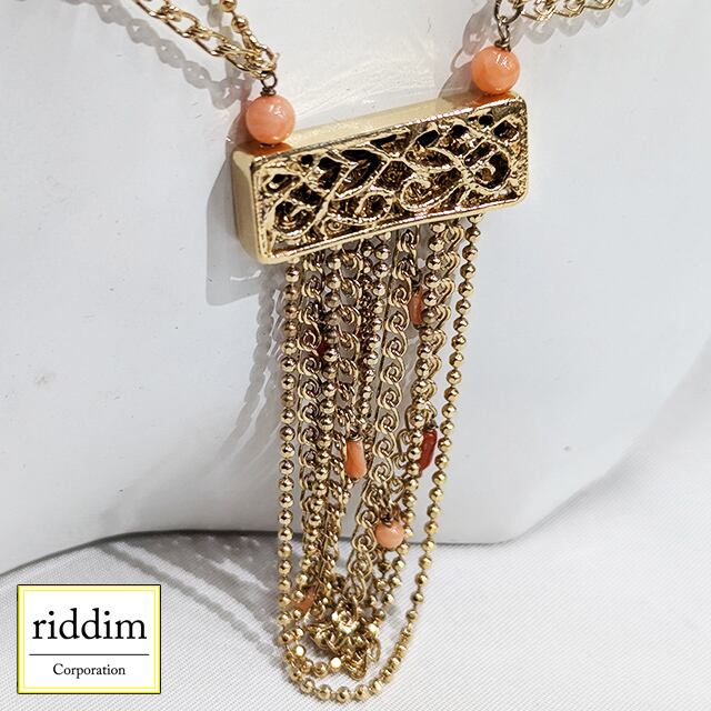 ヘッドの装飾が特徴的な希少な天然サンゴを使った2連ネックレス。