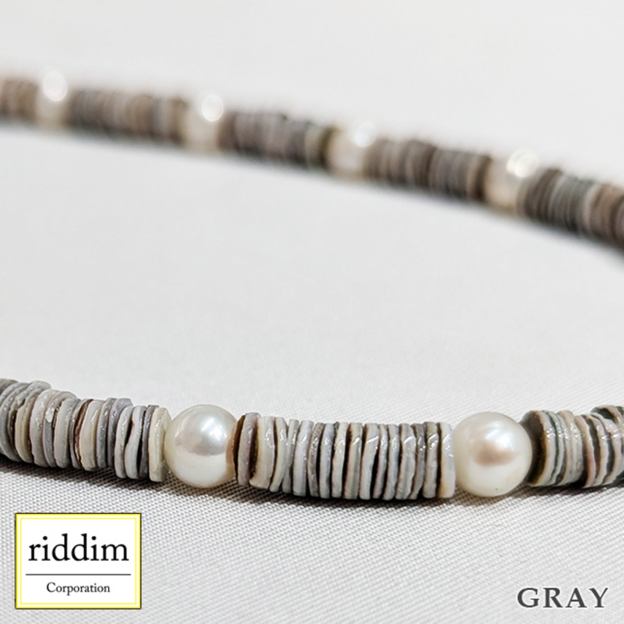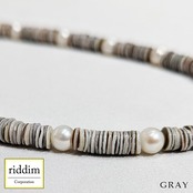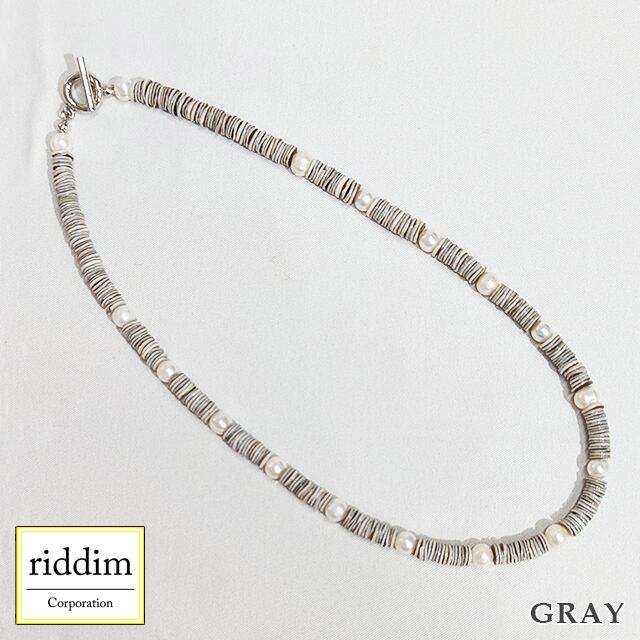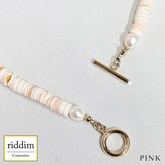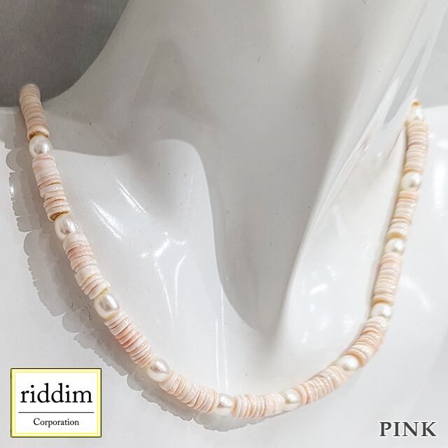 天然シェルヒーシーと淡水パールのネックレス。