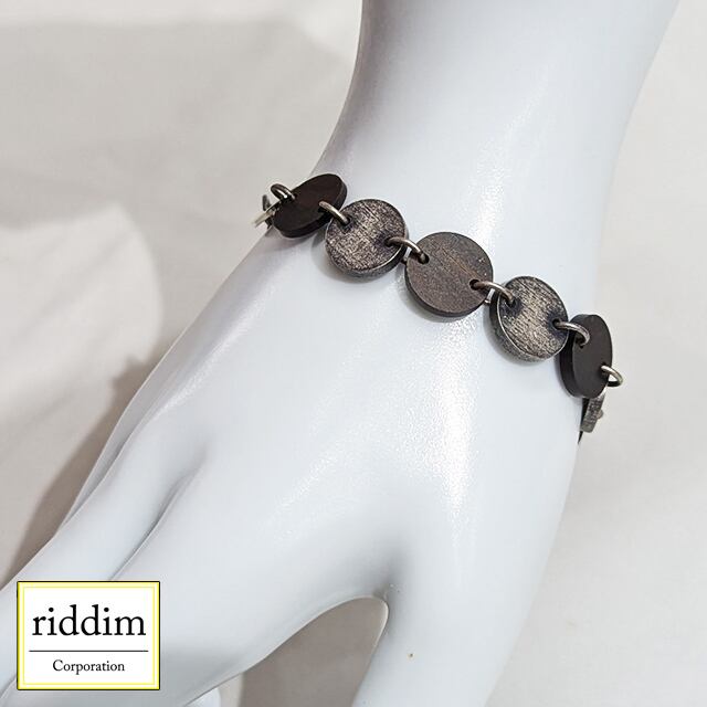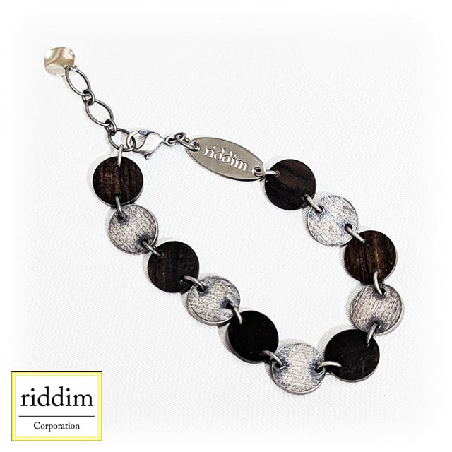 天然木とメタルの対局にあるような素材を組み合わせたブレスレット。