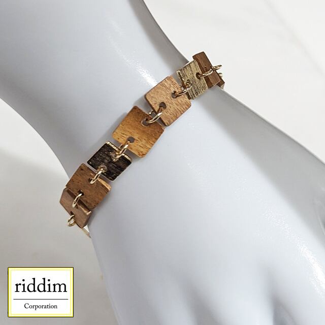 天然木とメタルの対局にあるような素材を組み合わせたブレスレット。