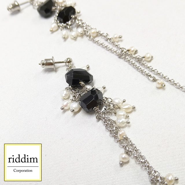 素材:天然石 (ブラックスピネル)、淡水パール、真鍮