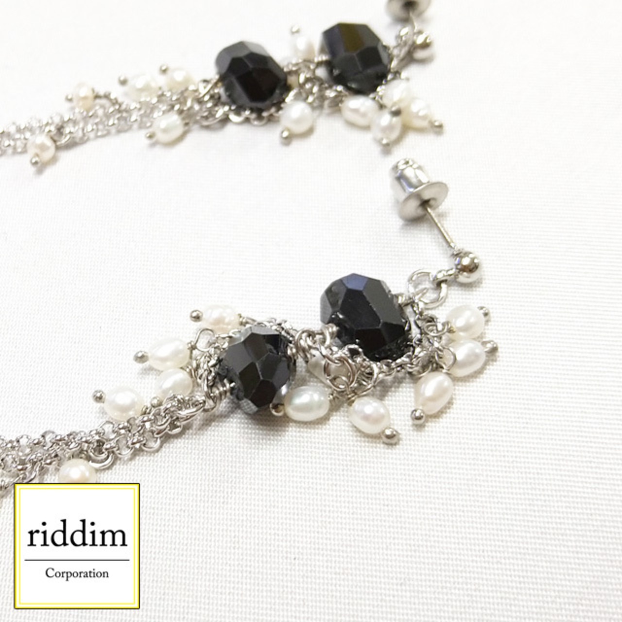 エッジのきいたブラックスピネルとやさしい丸みのあるシルエットのパールの組み合わせが絶妙なデザインバランスです。