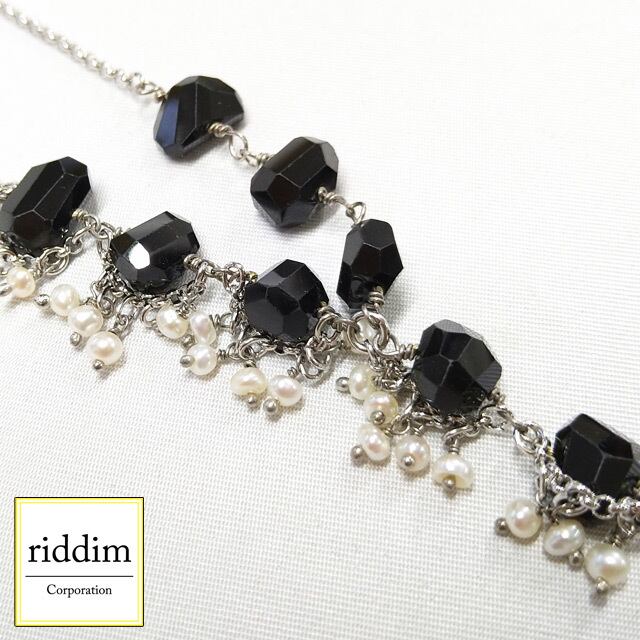 天然のブラックスピネルと小粒の淡水パールを使用したシックなネックレスです。