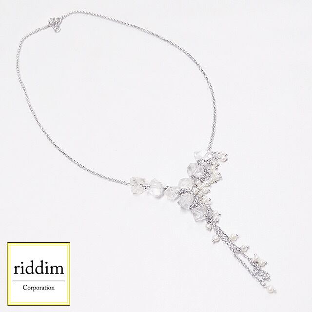 天然のハーキマー水晶と小粒の淡水パールを使用したネックレスです。