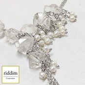 原石を活かしたエッジのきいたハーキマーとやさしい丸みのあるシルエットの小粒パールの組み合わせが絶妙なデザインバランスです。