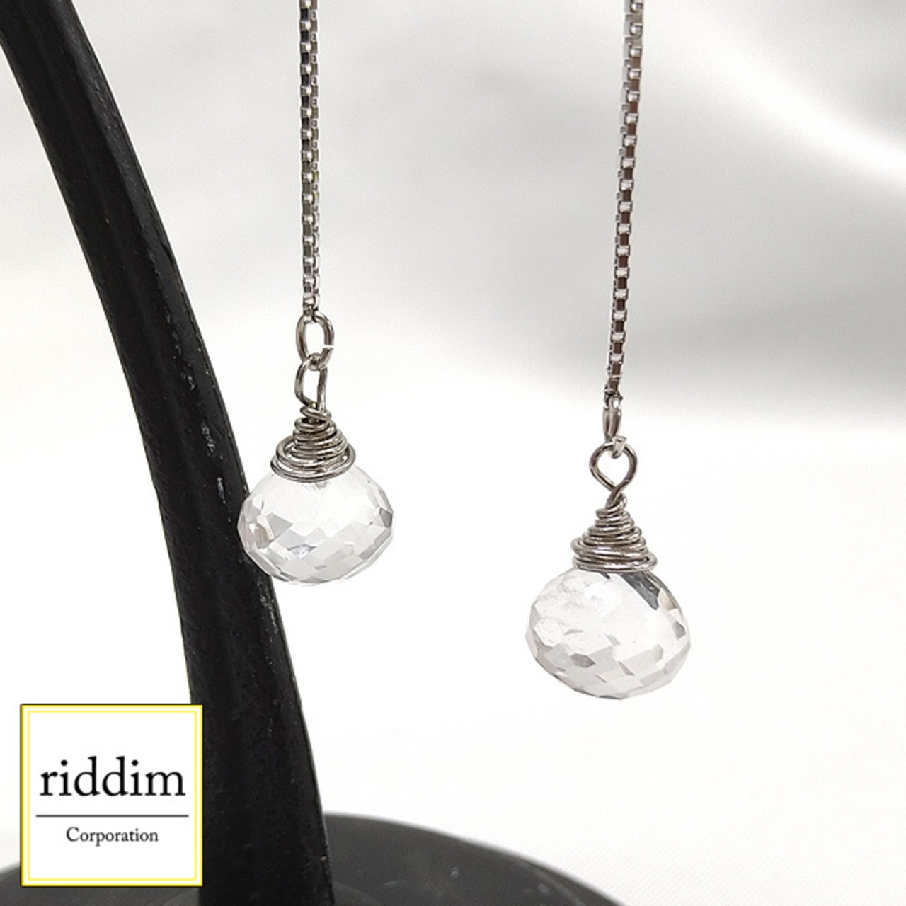 天然の水晶とベネチアンチェーンを使用したピアスです。