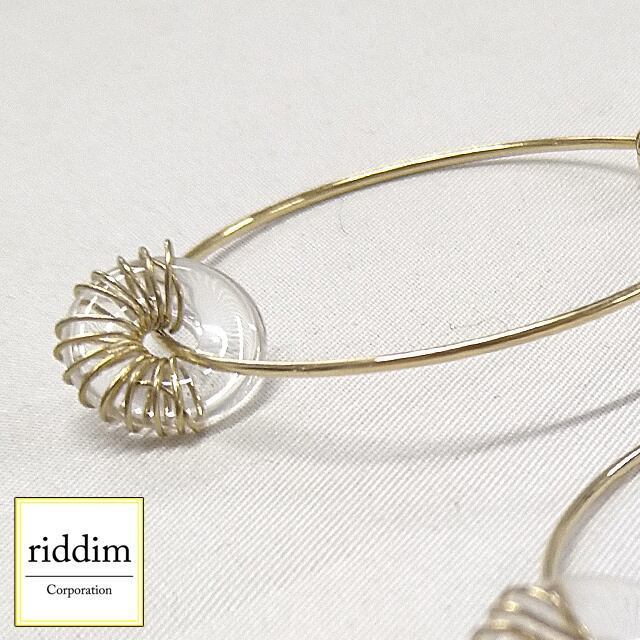 サークル型の水晶にコイル状に真鍮を巻きつけた特長的なデザインです。