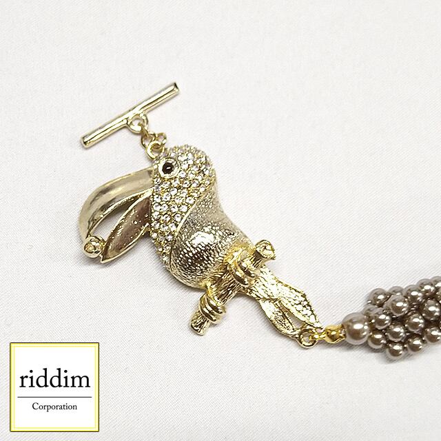 レトロ調 6連ねじりパール ネックレス 鳥×ルチルクォーツ [ riddim ] リディム アンティーク パワーストーン