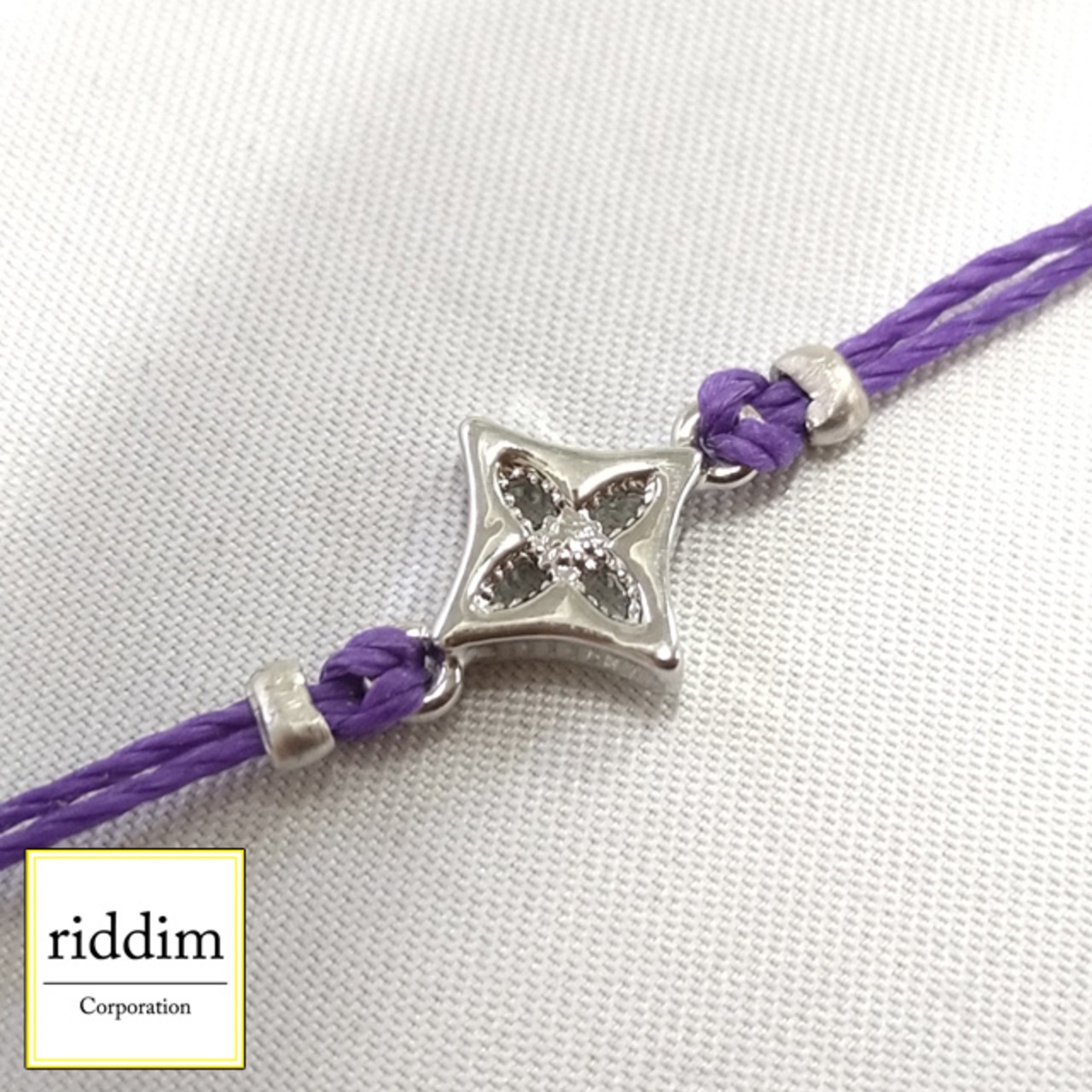 小さなかわいらしいクロスチャームがついたワックスコードブレスレットです。