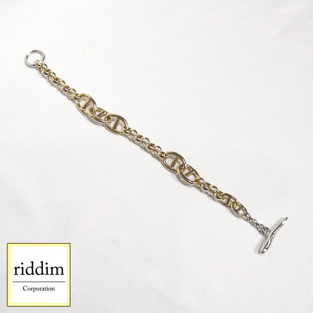 センターバーが入ったサイズ違いの楕円リングを使った太目のチェーンブレスレットです。