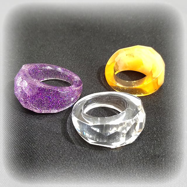 透明度の高いクリアレジンを使ったダイヤモンドカットリングです。