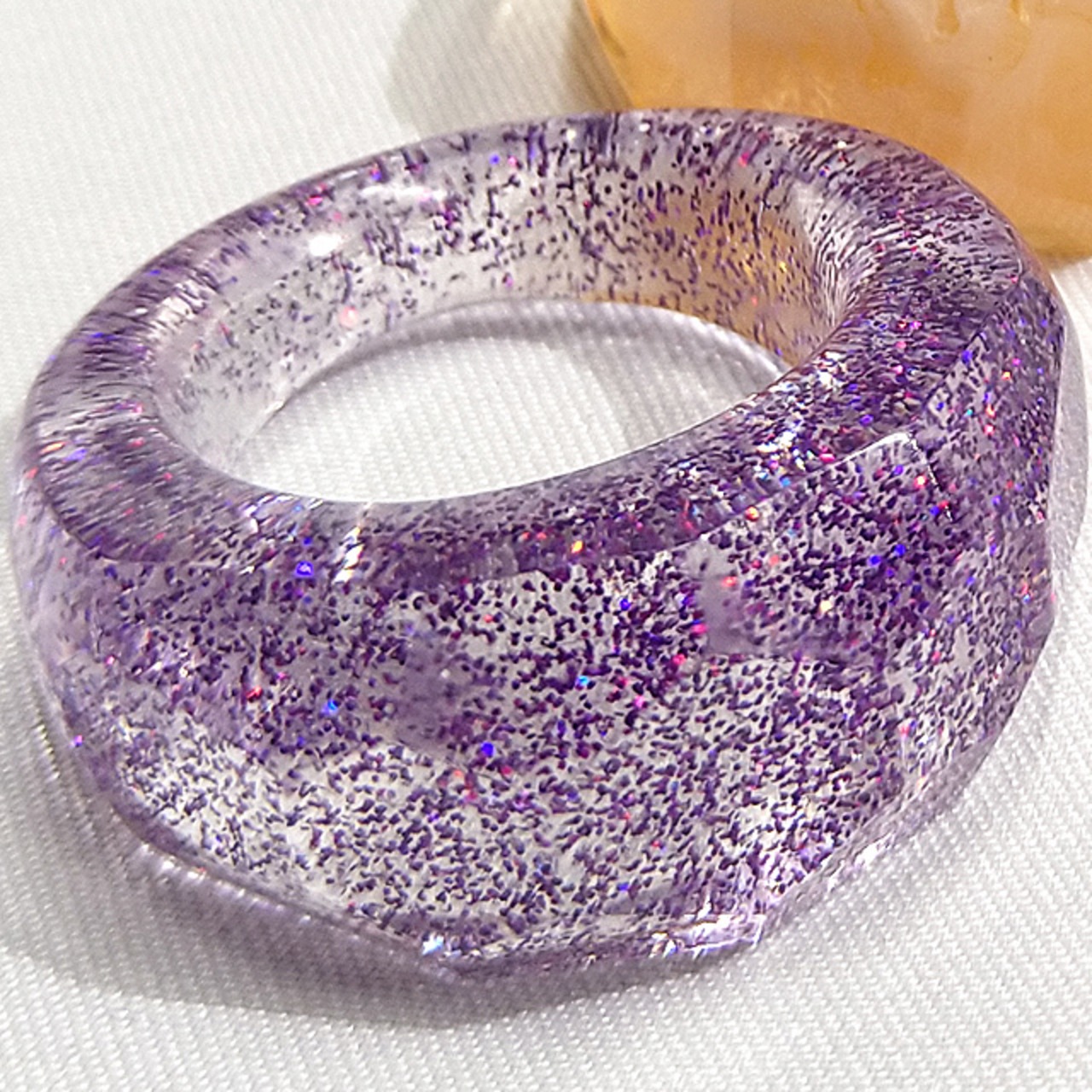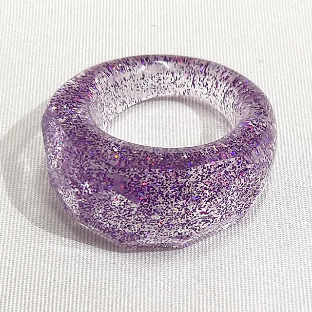 ダイヤモンドカットクリアリング M レジン クリア&パープルラメ クリア オレンジマーブル 指輪