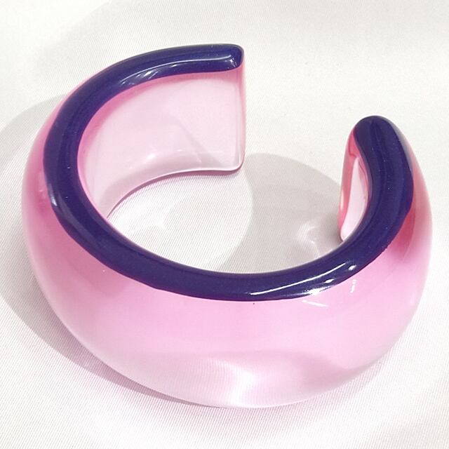 クリアピンクにパープルラインが入ったフェミニンなC型ワイドバングルです。