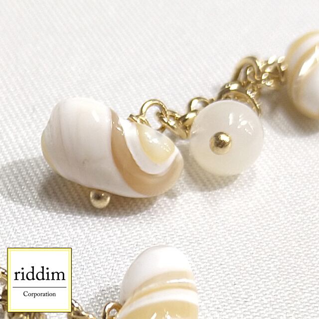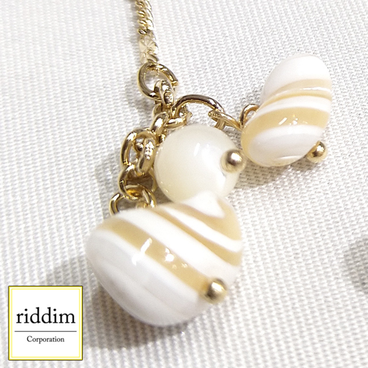 ホワイトとクリアクリームのシマシマが可愛らしい自然な形に削り出した小粒のマザーオブパールが連なるピアスです。