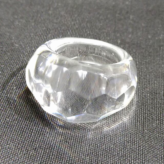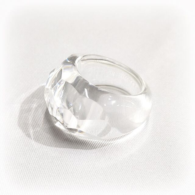 透明度の高いレジンのクリア感とカットによる輝きがとても美しい氷を思わせるダイヤモンドリングです。