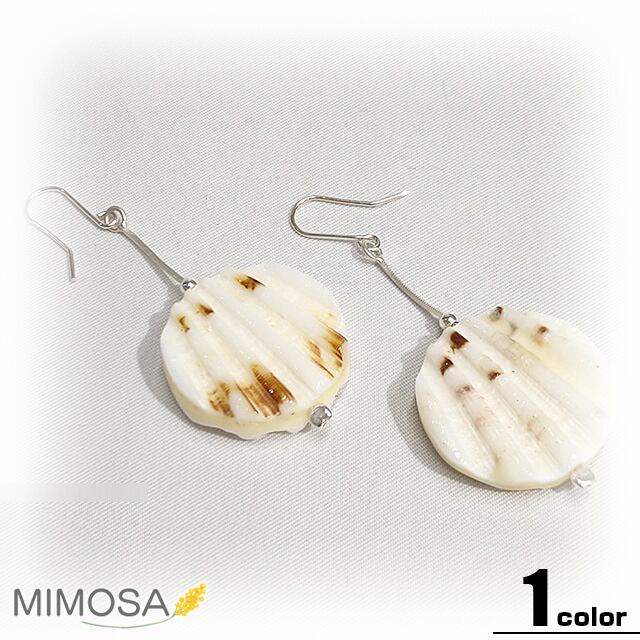 ハワイ近海の太平洋からとれるロイヤルクロークシェルから削り出したピアスです。