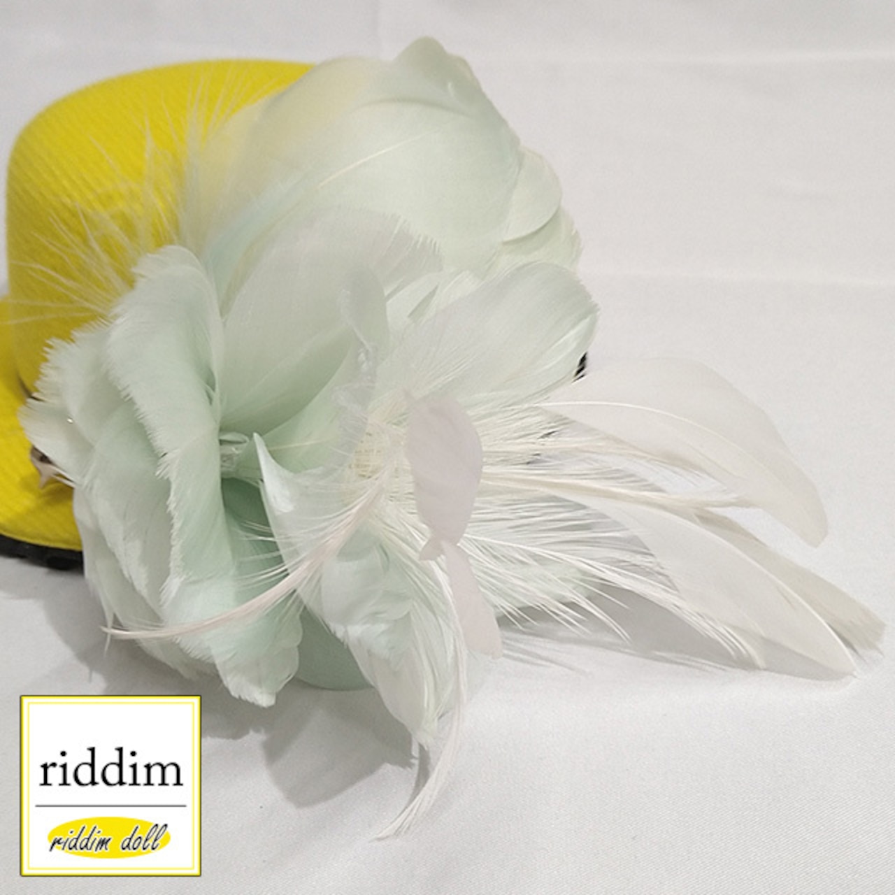 素材:フェルト、真鍮、鳥羽(グリーン、イエロー)