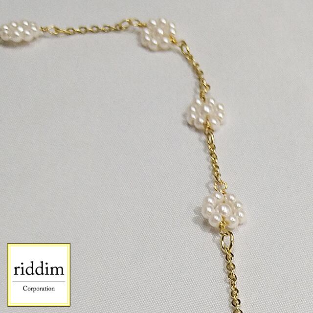留め具はベーシックな丸カンで、アジャスターで長さ調整可能です。