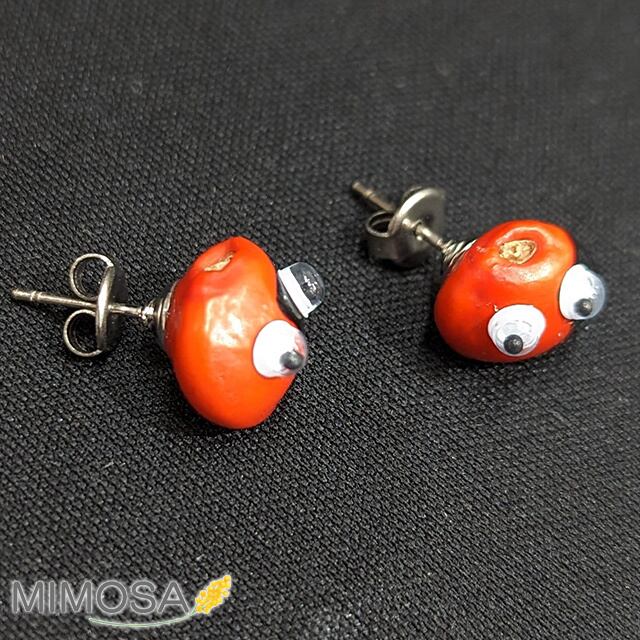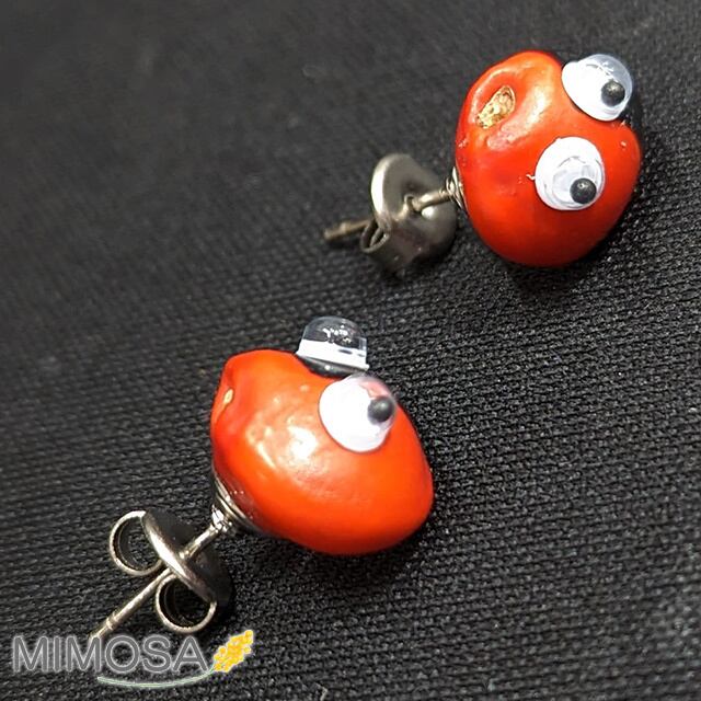 幸運のアイテム、ワイルーロの実にくるくる動く目玉を付けた可愛らしいピアスです。