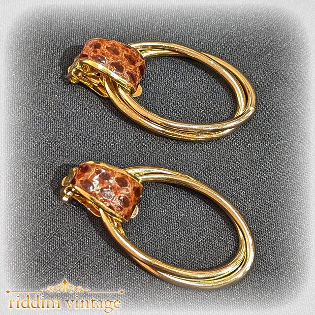 落ち着いたベージュの蛇革とゴールドの配色がエレガントな2連イヤリングです。