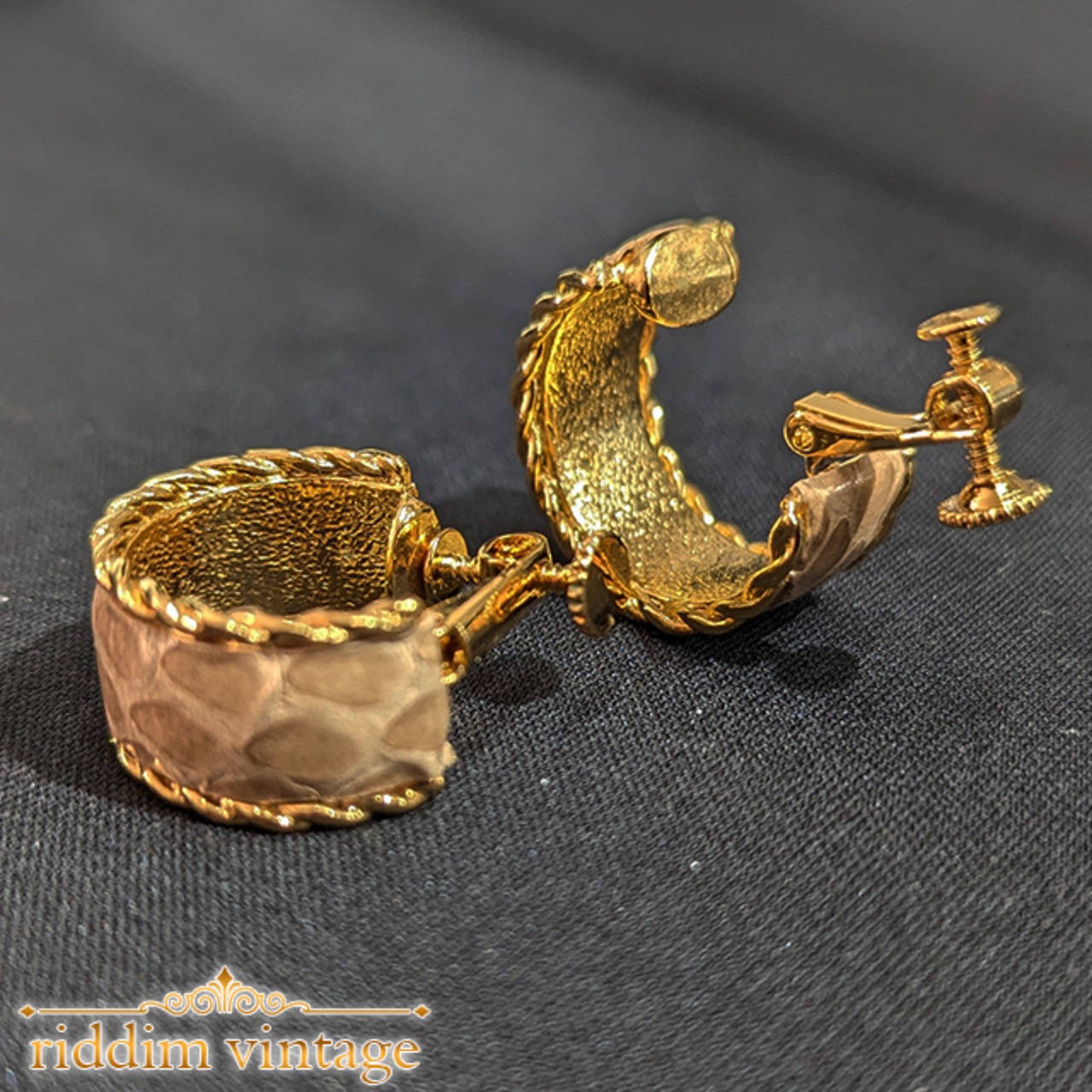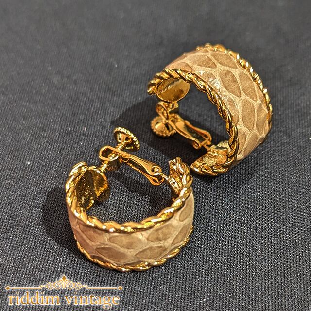 ゴールドとスネークスキンを合わせた、とてもエレガントなC型フープイヤリングです。