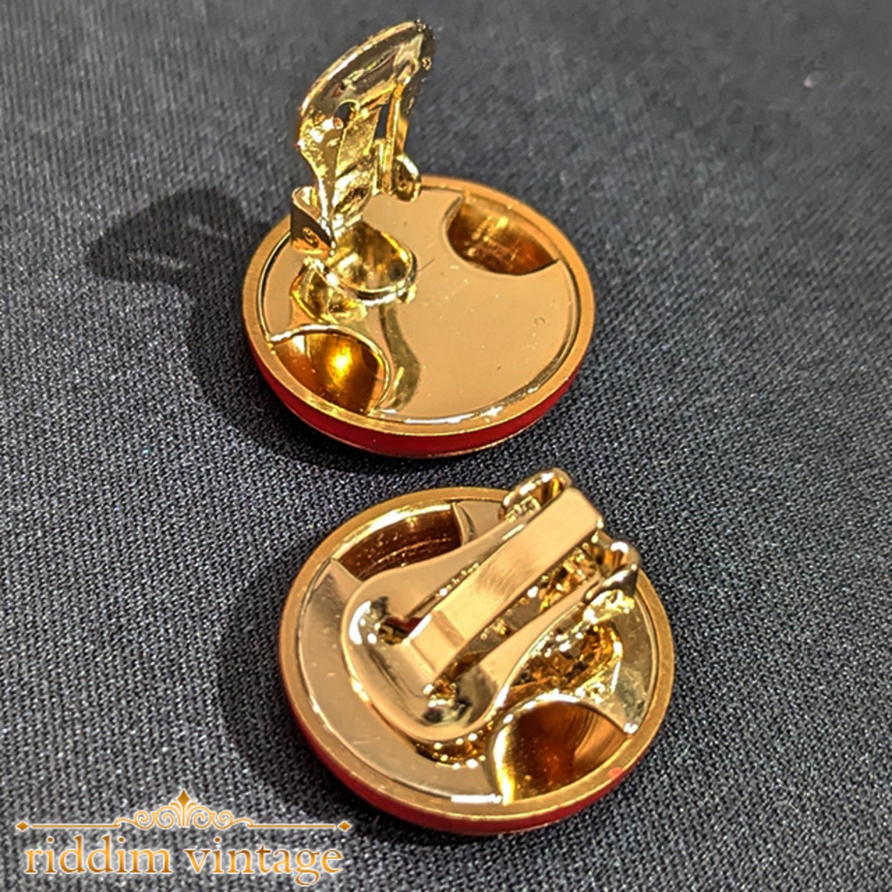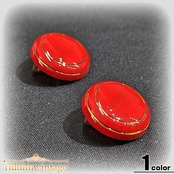 独特の色合いの赤&ゴールドのボタン型イヤリング。