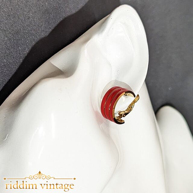 独特の色合いの赤&ゴールドのフープイヤリング。