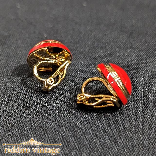 独特の色合いの赤が魅力的なかわいらしいハーフボールイヤリング。