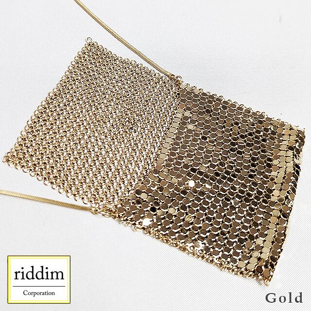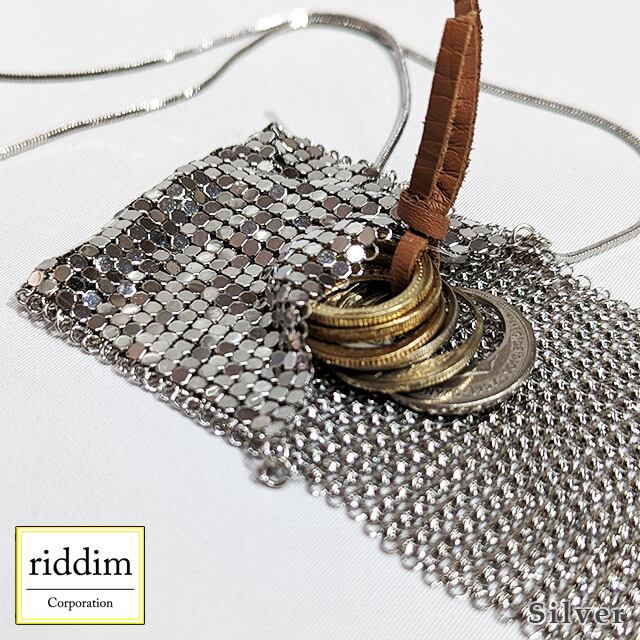 小さなメタルシートが連なる小さなポーチのネックレスです。