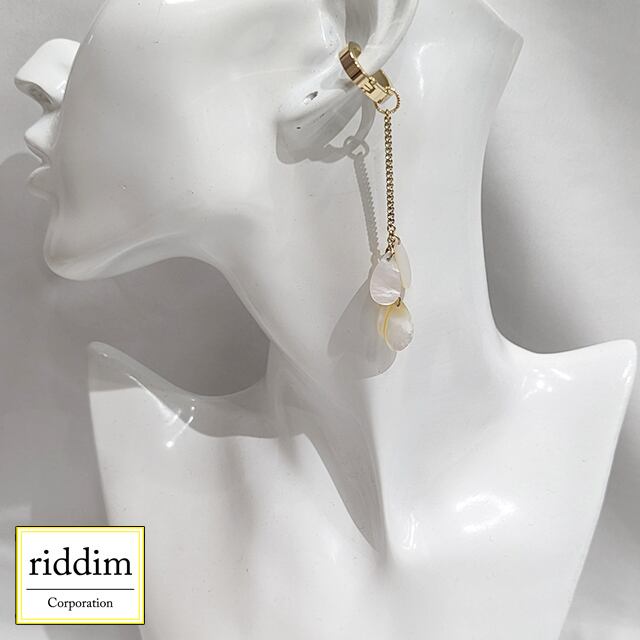 ティアドロップ型の天然シェルプレート×5のイヤカフ。
