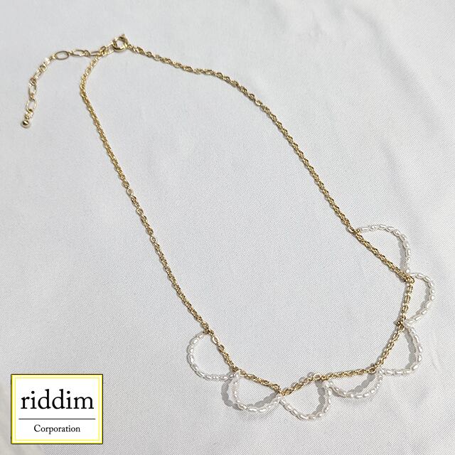 極小粒の淡水パールループが花のように並んだネックレスです。